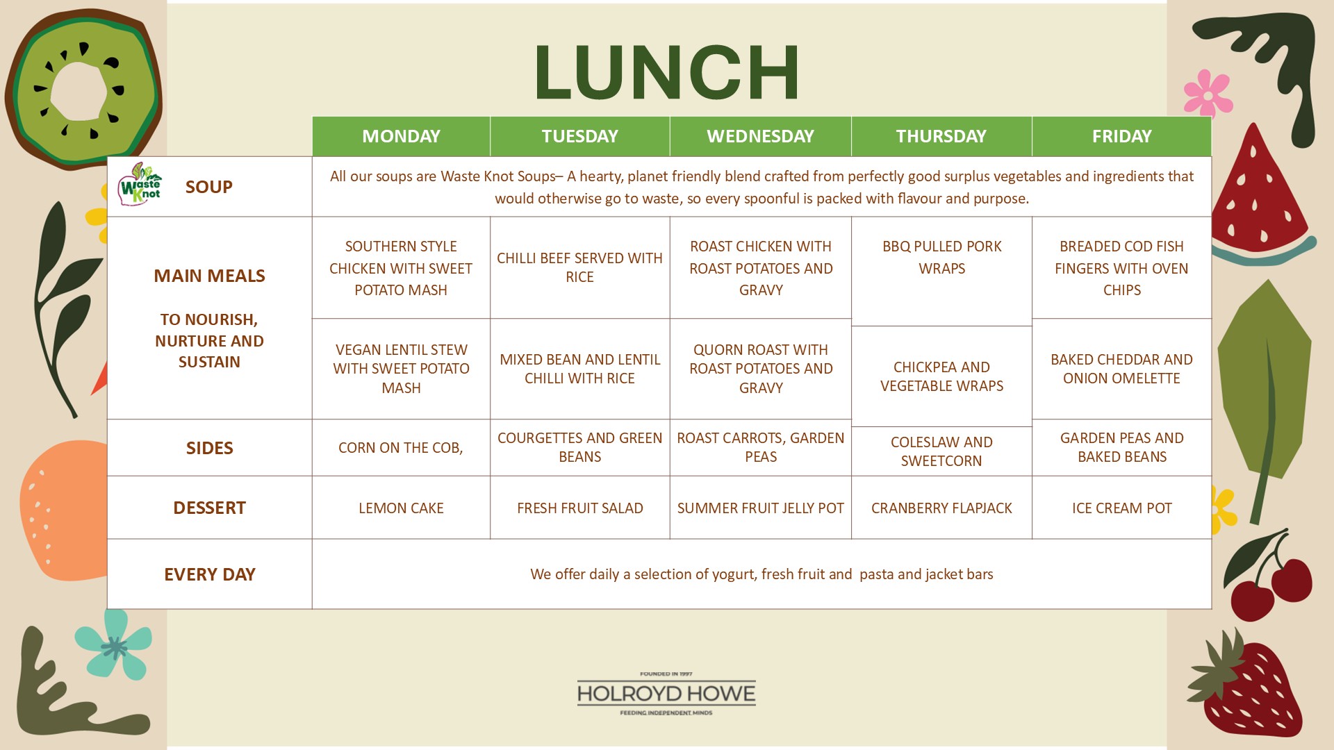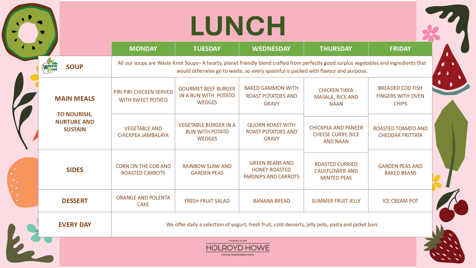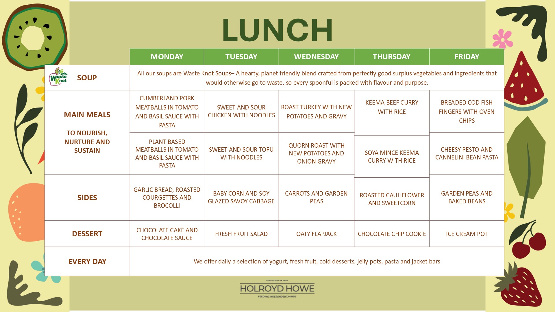 All food is freshly prepared on site by our Chef and catering team, from Holroyd Howe who are specialist school caterers.